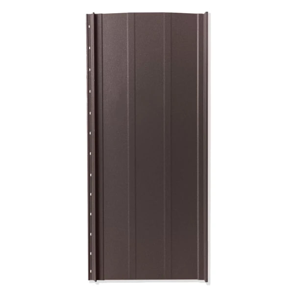 Изделие изготовлено из высококачественной стали толщиной 0.5 мм, произведённой немецким концерном ArcelorMittal. Сталь покрыта матовым полимерным слоем PEMA, который устойчив к ультрафиолету, влаге, механическим повреждениям и агрессивным атмосферным условиям. Универсальный тёмно-коричневый цвет RAL 8017 отлично вписывается в классические и современные архитектурные проекты.