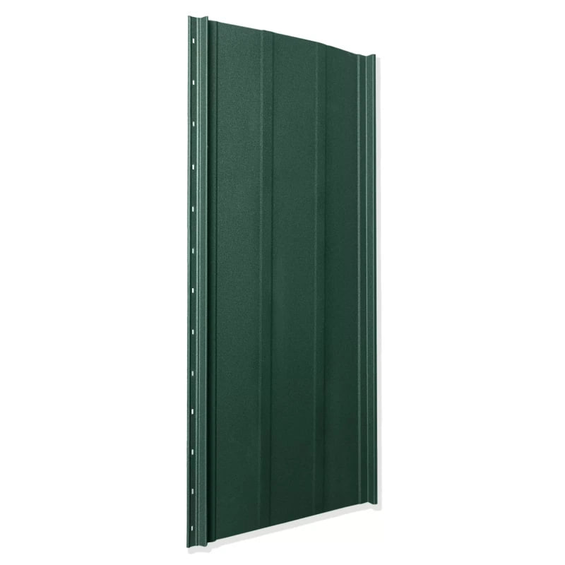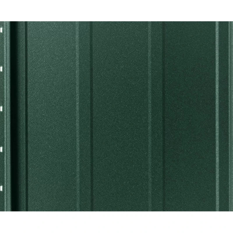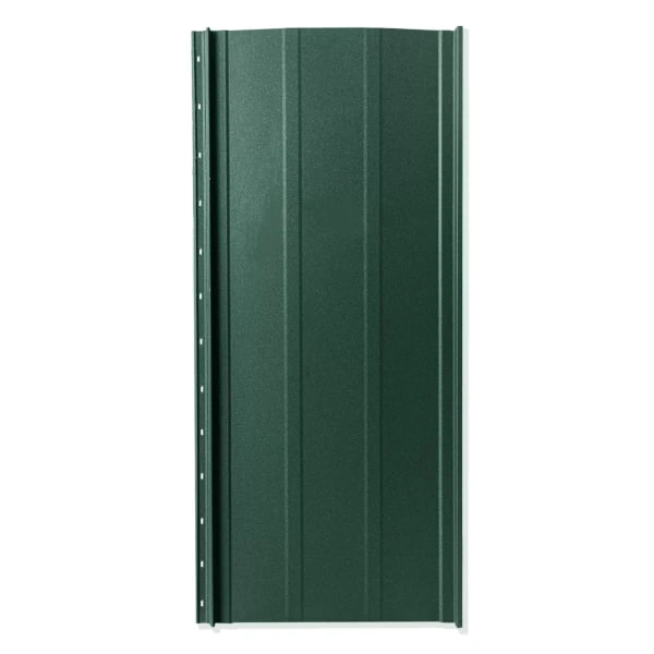 Кровельный материал изготовлен из стали толщиной 0.4 мм, поставляемой украинским производителем МиП. Высококачественное матовое полимерное покрытие PEMA, нанесённое на обе стороны, защищает поверхность от коррозии, ультрафиолета и климатических воздействий. Цвет RAL 6005 (зеленый мох) придаёт кровле естественный и гармоничный внешний вид, особенно актуальный для загородных домов и коттеджей.