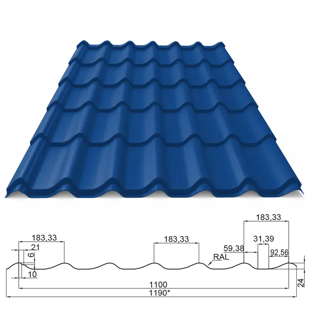 Металлочерепица формы Монтерей отличается волнообразным профилем, создающим элегантный вид и обеспечивающим эффективный отвод воды. Толщина стали доступна в вариантах 0,40 мм; 0,45 мм; 0,50 мм, что позволяет подобрать оптимальное решение под конкретные потребности. В производстве используется высококачественная сталь от ArcelorMittal, Arcelor Nippon, Dongbu Steel, Diadong, Arvedi, SeaH, Thyssen Krupp, Voestalpine, US Steel Košice, МиП, Модуль, изготовленная в странах Китай, Корея, Германия, Польша, Словакия Вьетнам, Италия.